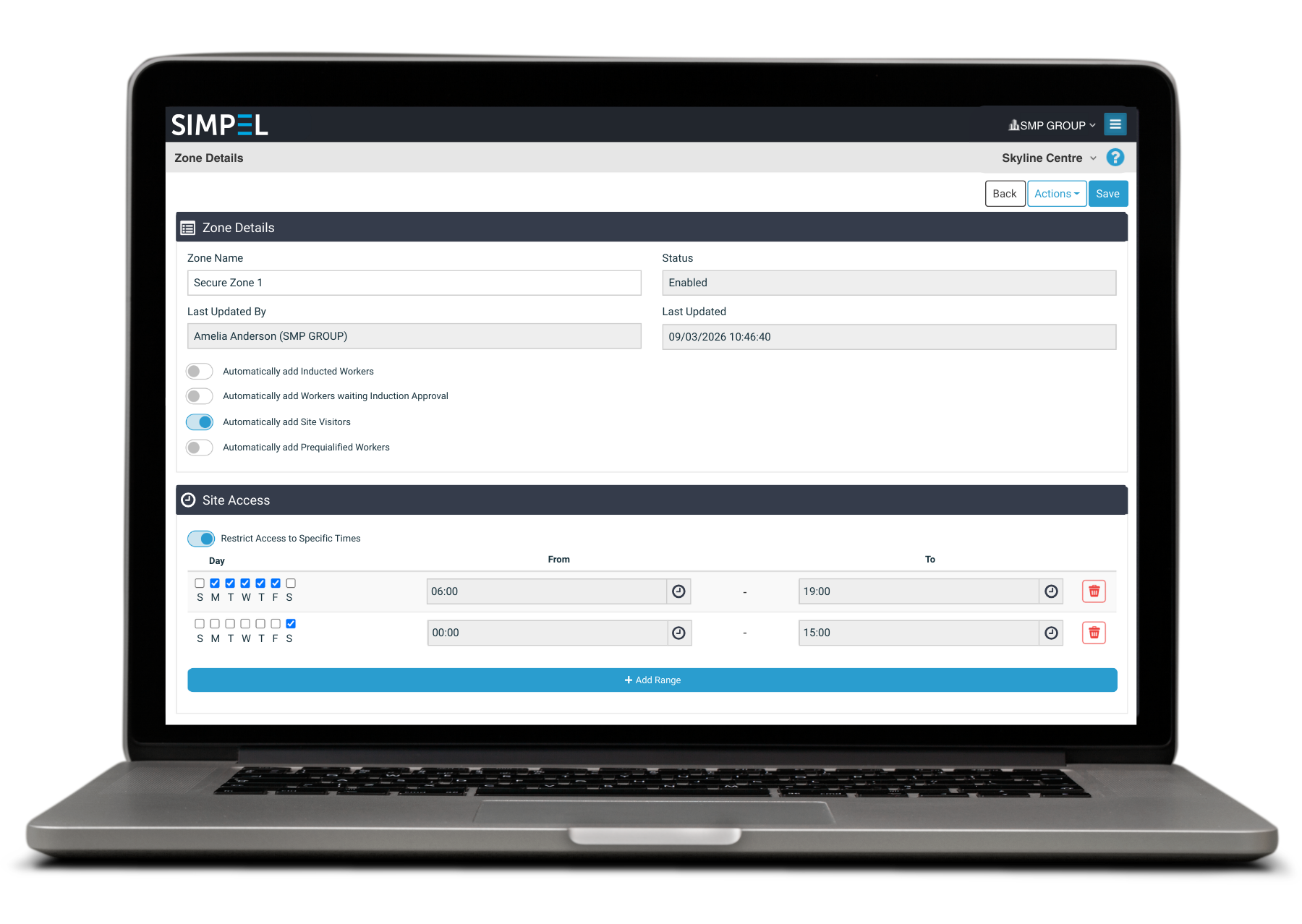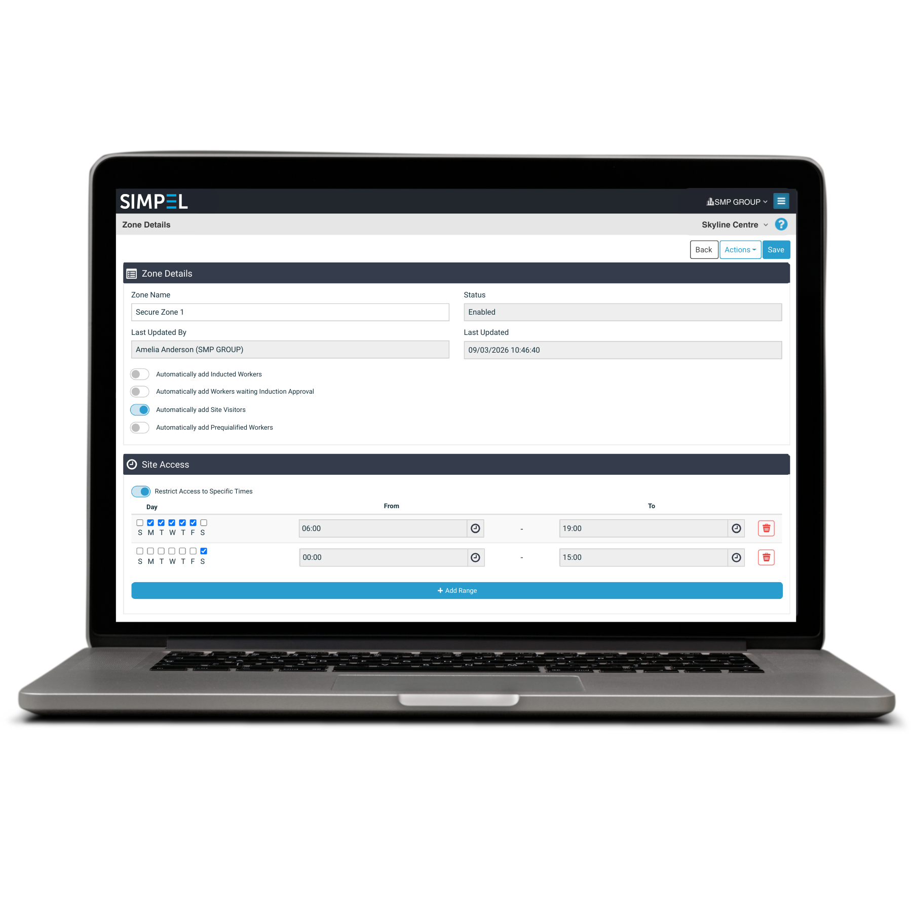 - Grant zone access to all inducted users or restrict it to workers with specific authorisations